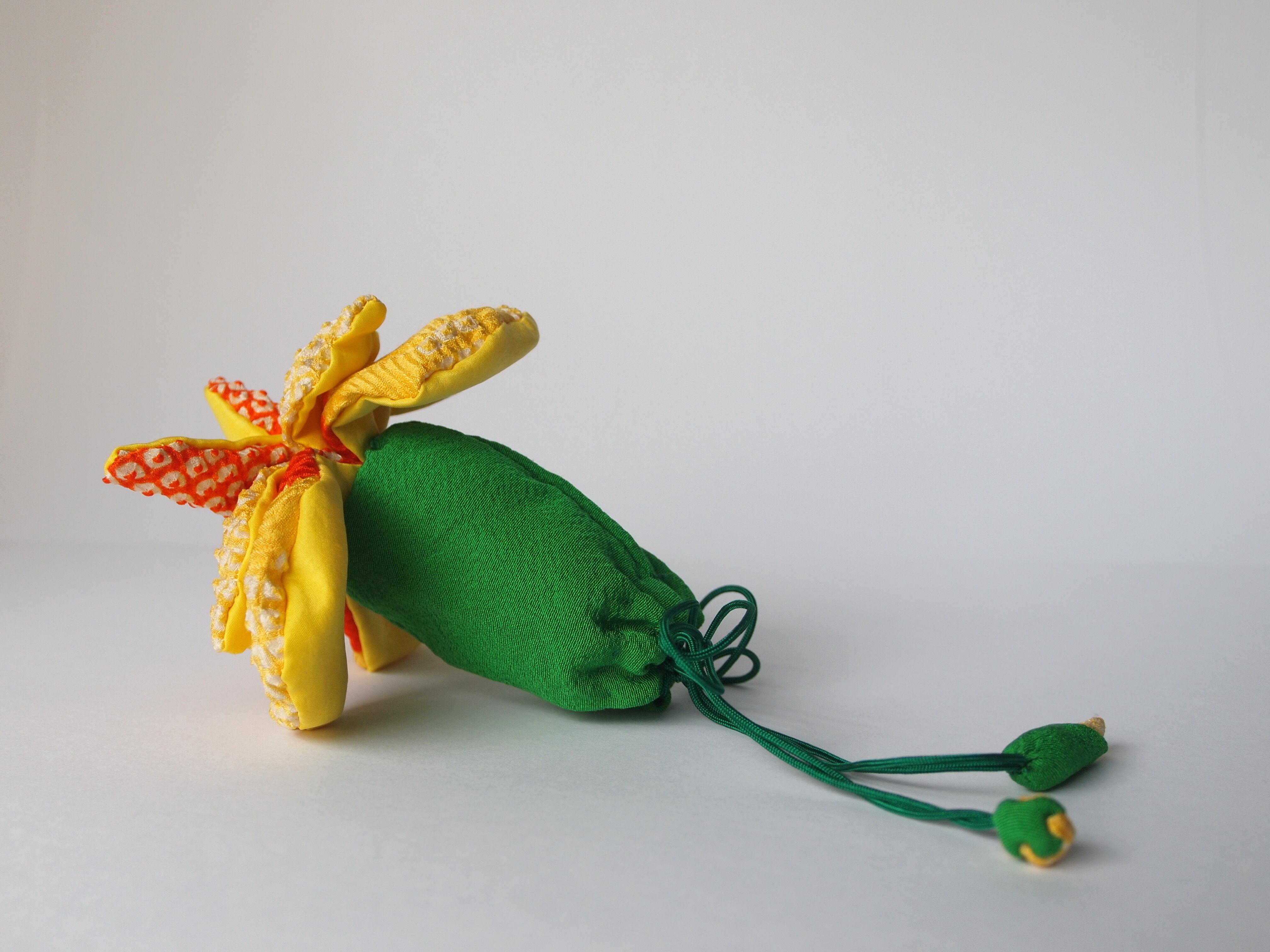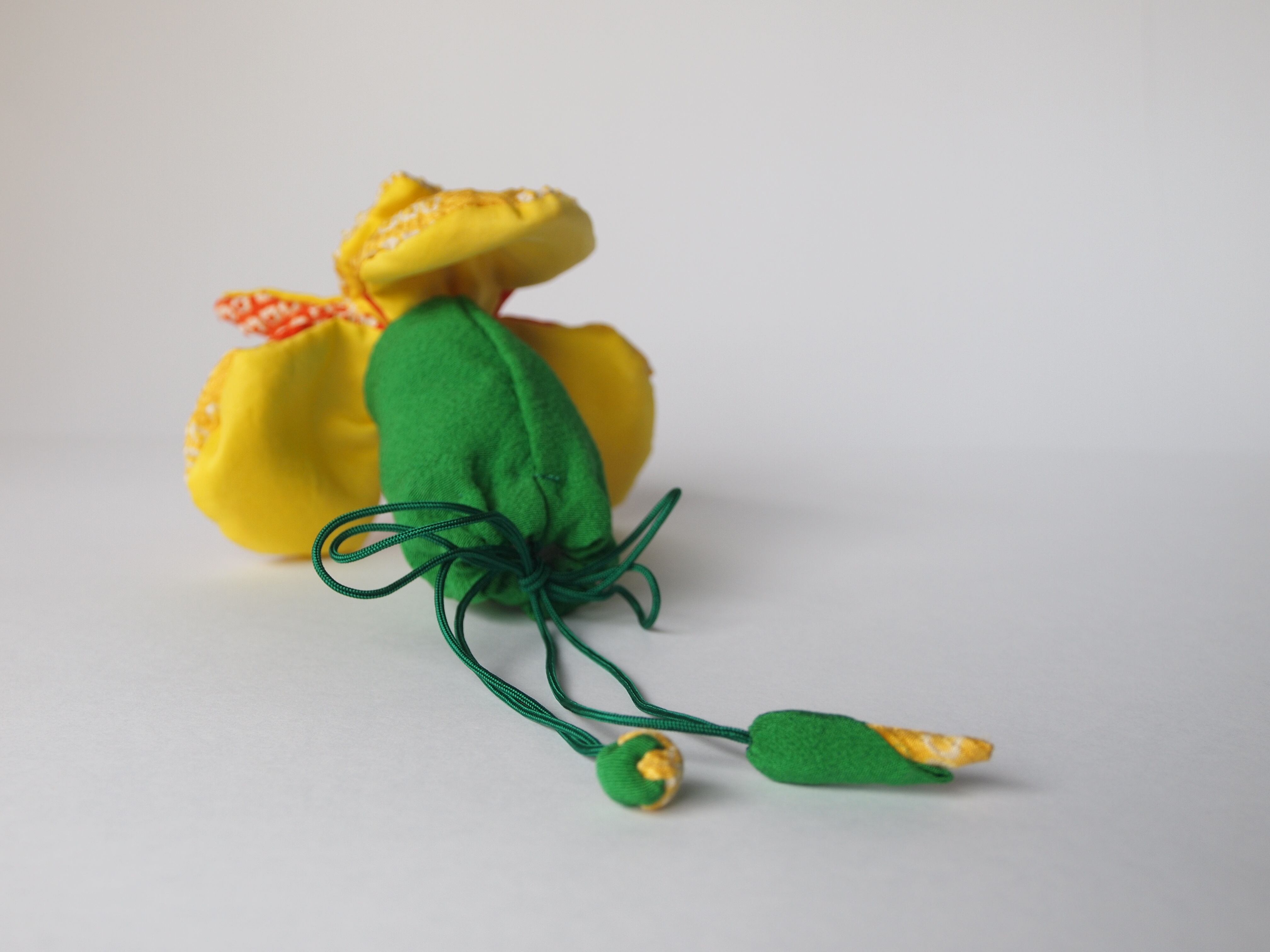 花の下部の緑色の部分がお香を入れられる袋となっています。